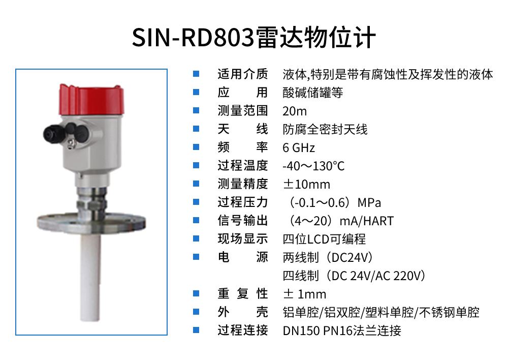 您的位置:首頁 > 雷達(dá)液位計(jì) → SIN-RD803T雷達(dá)物位計(jì)_適用于帶有腐蝕性及揮發(fā)性的液體_