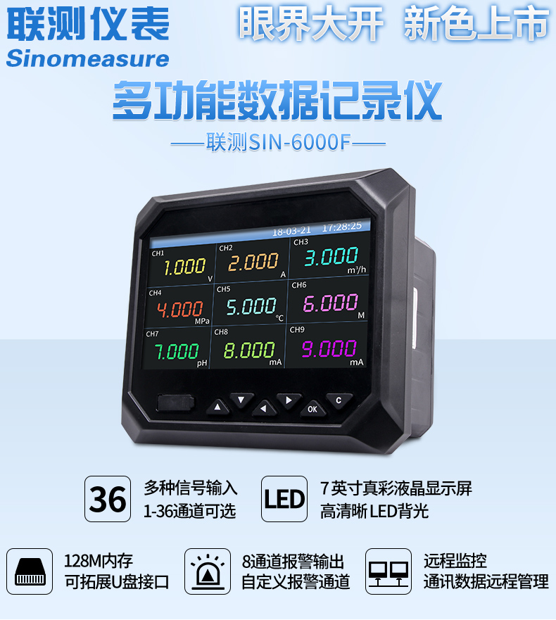 您的位置:首頁 > 無紙記錄儀 → 聯(lián)測_SIN-R6000F_新款無紙記錄儀144*144_全新36萬能通道