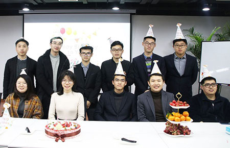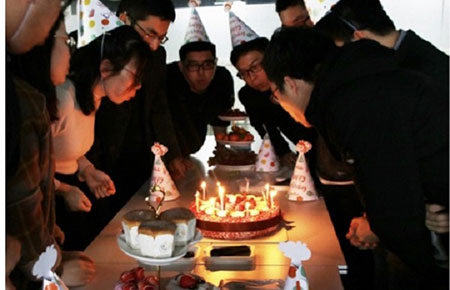 十幾位壽星歡聚在公司總部報告廳,大家圍繞在甜甜的蛋糕邊上,一起吹蠟燭,許心愿,每個壽星的臉上洋溢著幸福的味道。