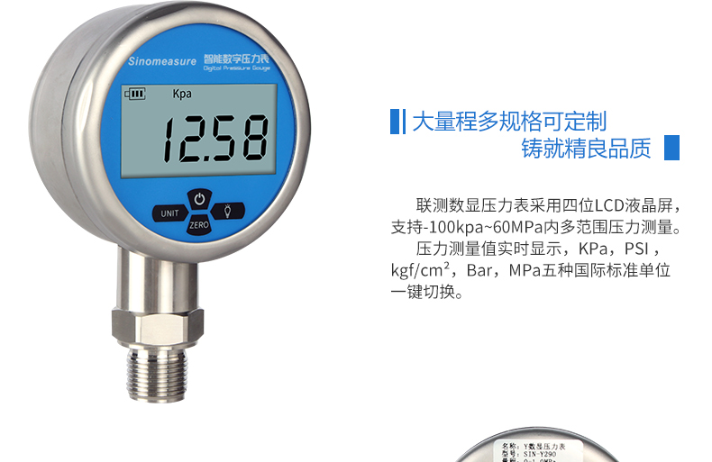 聯測數顯壓力表Y290,內置高精度壓力傳感器,能夠 準確的實時顯示壓力,并且具有精度高,長期穩定性好 的特點。