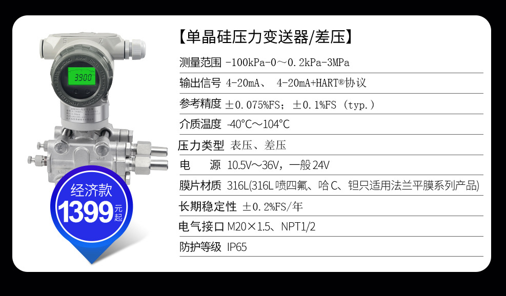 SIN-P2051G差壓安裝式表壓/絕壓變送器用于測量液體、氣體或蒸汽的液位、密度、壓力,然后將其轉變成4~20mADC HART電流信號輸出。采用先進的高精度單晶硅技術,測量精度高達0.075級,特有的雙過載保護膜設計,單向過壓高達10MPa